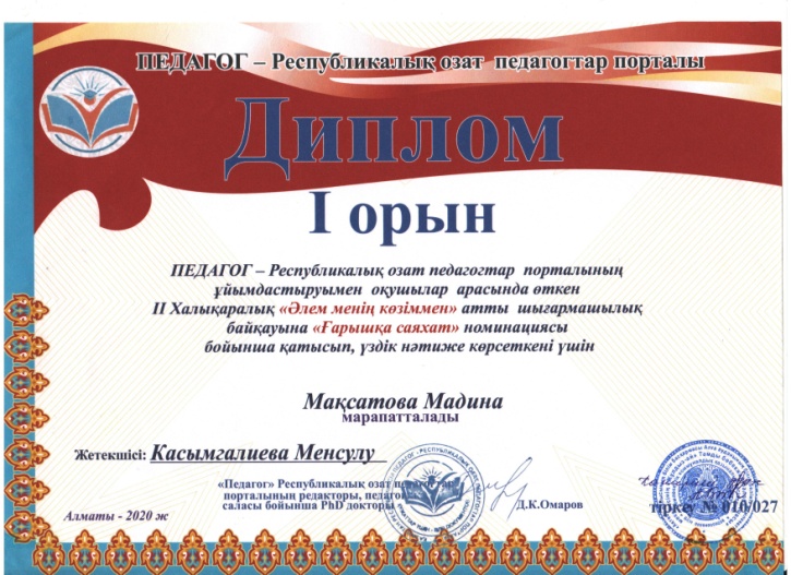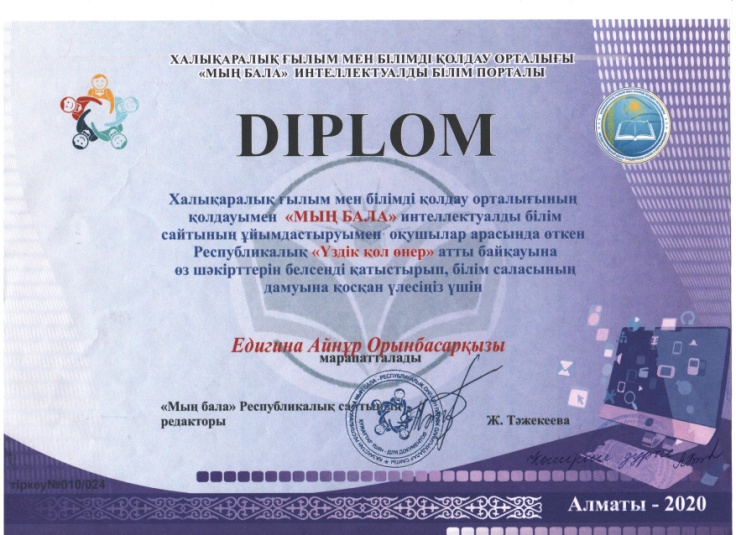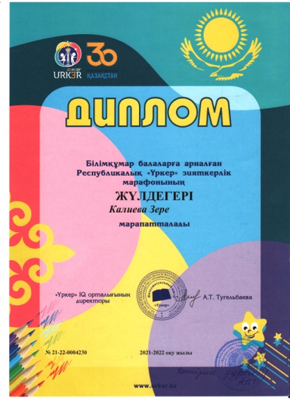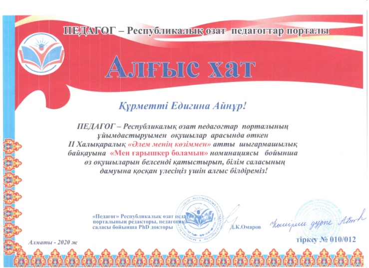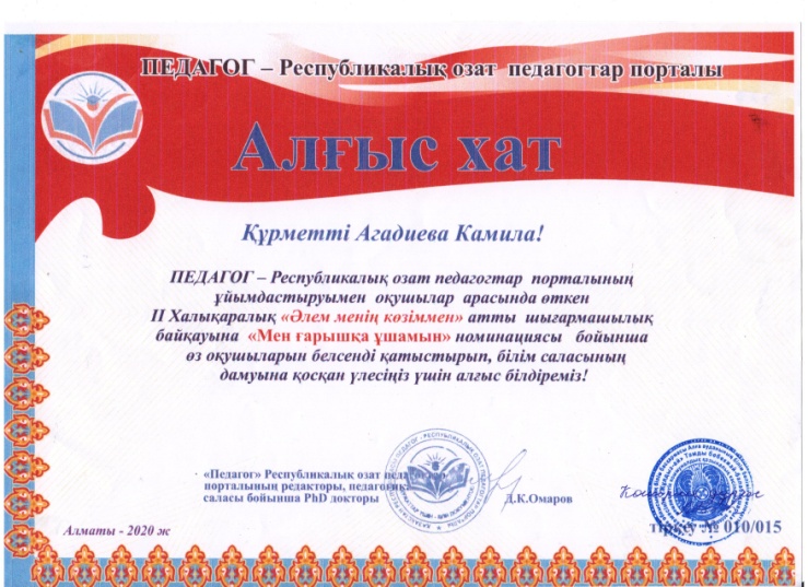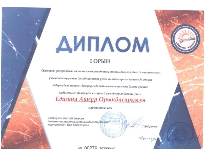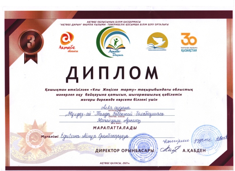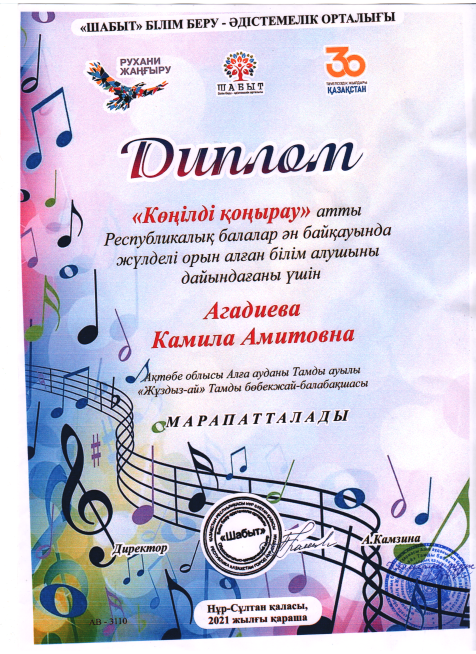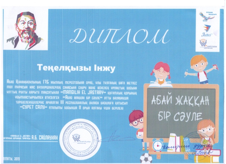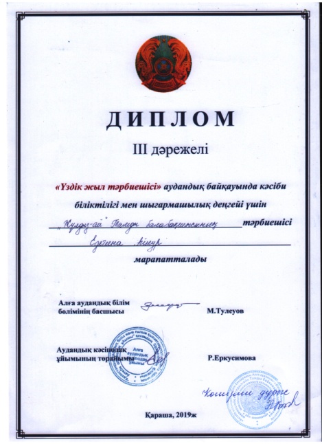 САЙТ» облыстық байқауына қатысып белсенділік танытқаны үшін «Жұлдыз- ай» Тамды