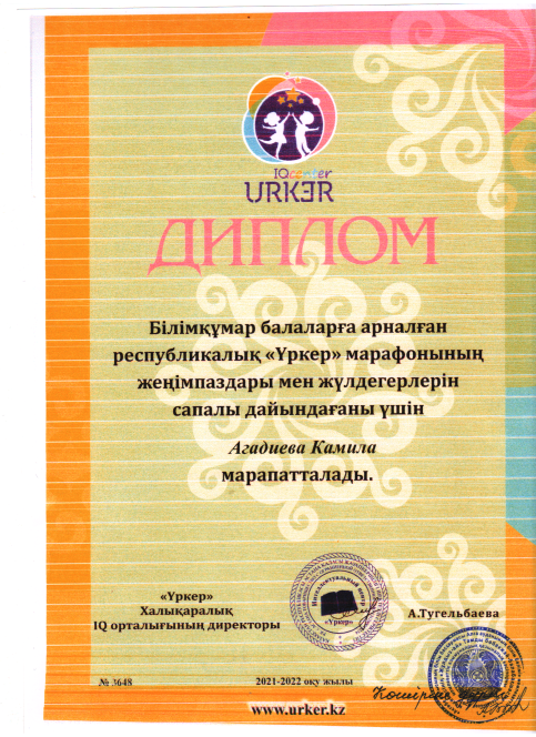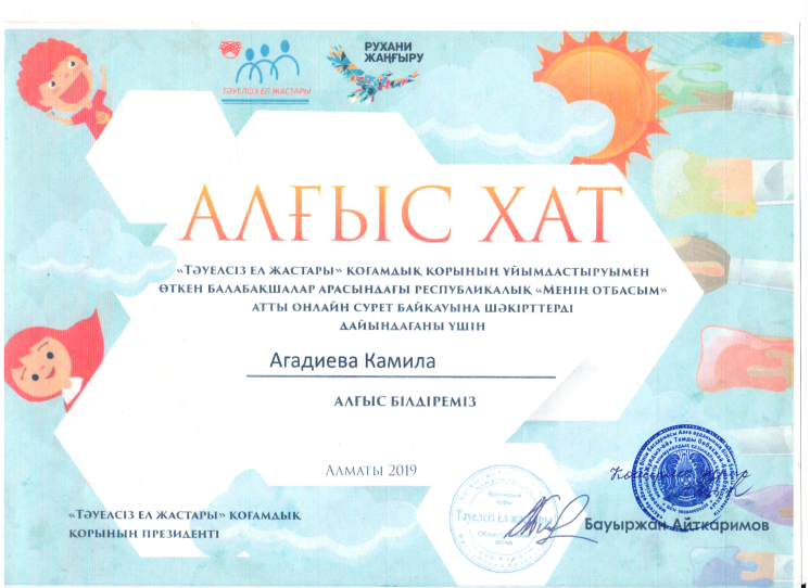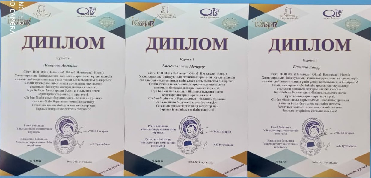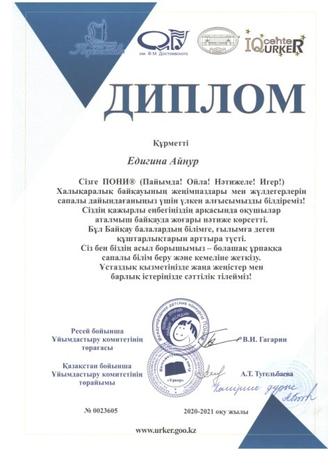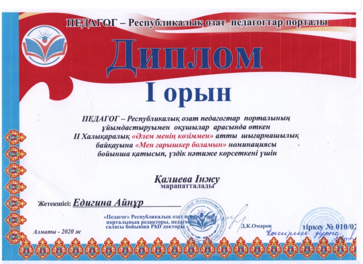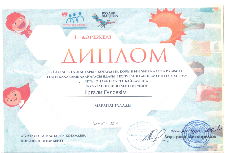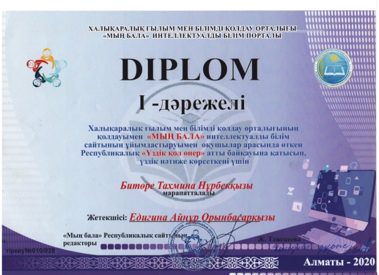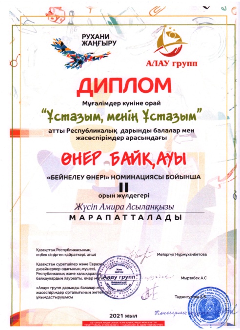 САЙТ» облыстық байқауына қатысып белсенділік танытқаны үшін «Жұлдыз- ай» Тамды