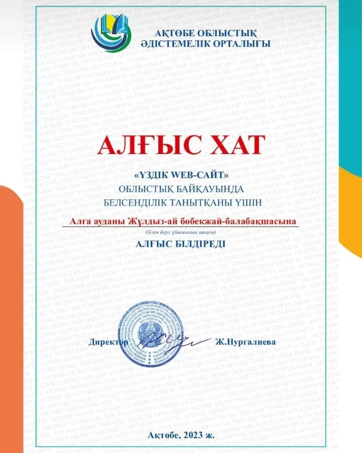 23.10.2023жыл. Ақтөбе облыстық әдістемелік орталығы ұйымдастырған «Үздік WEB-