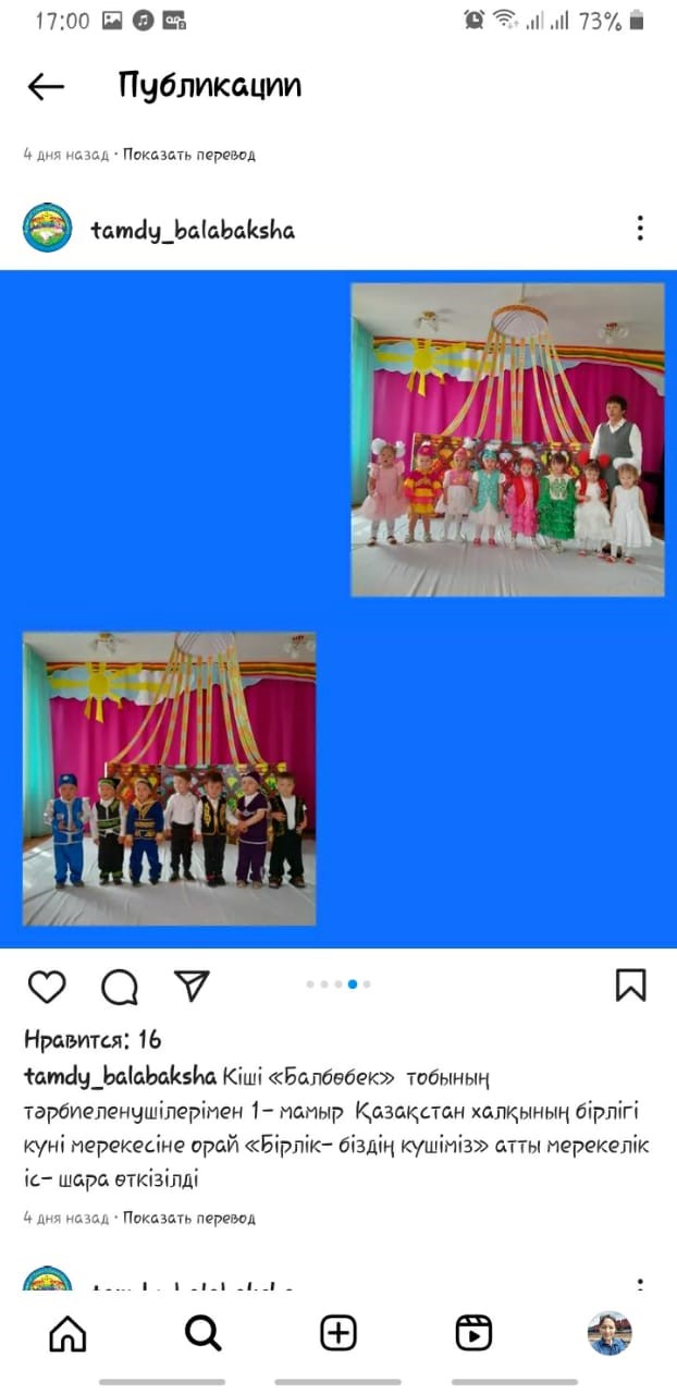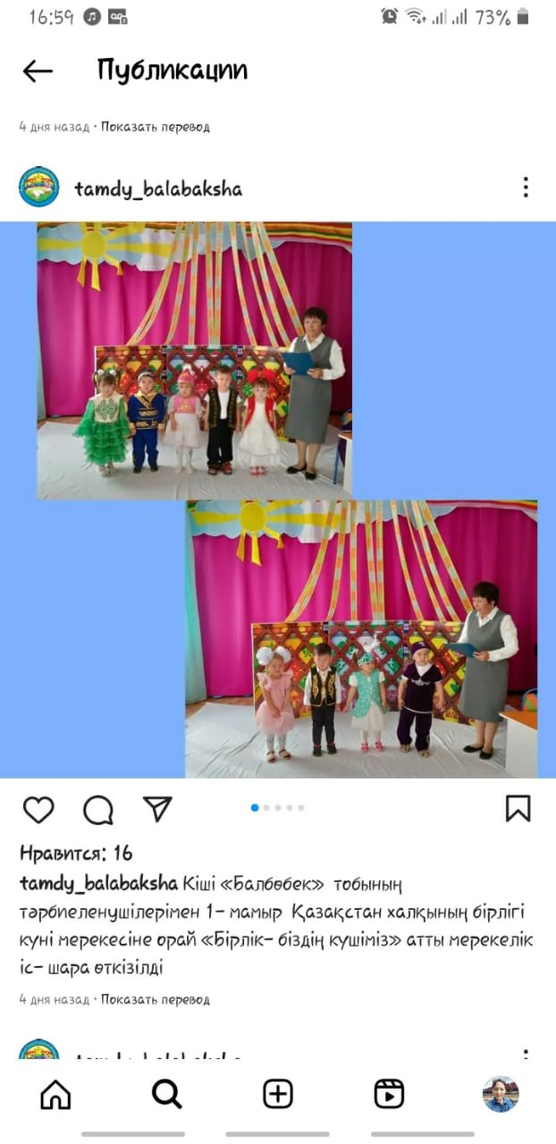 Кіші «Балбөбек» тобының тәрбиеленушілерімен 1- мамыр Қазақстан халқының бірлігі күні мерекесіне орай «Бірлік- біздің күшіміз» атты мерекелік  іс- шара  өткізілді.