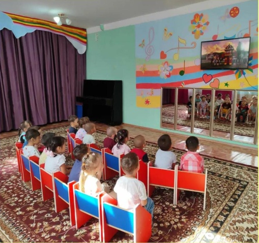 25.08.2023жыл. Балабақша тәрбиеленушілеріне мультфильм көрсету арқылы қауіпсіздік ережелері түсіндірілді