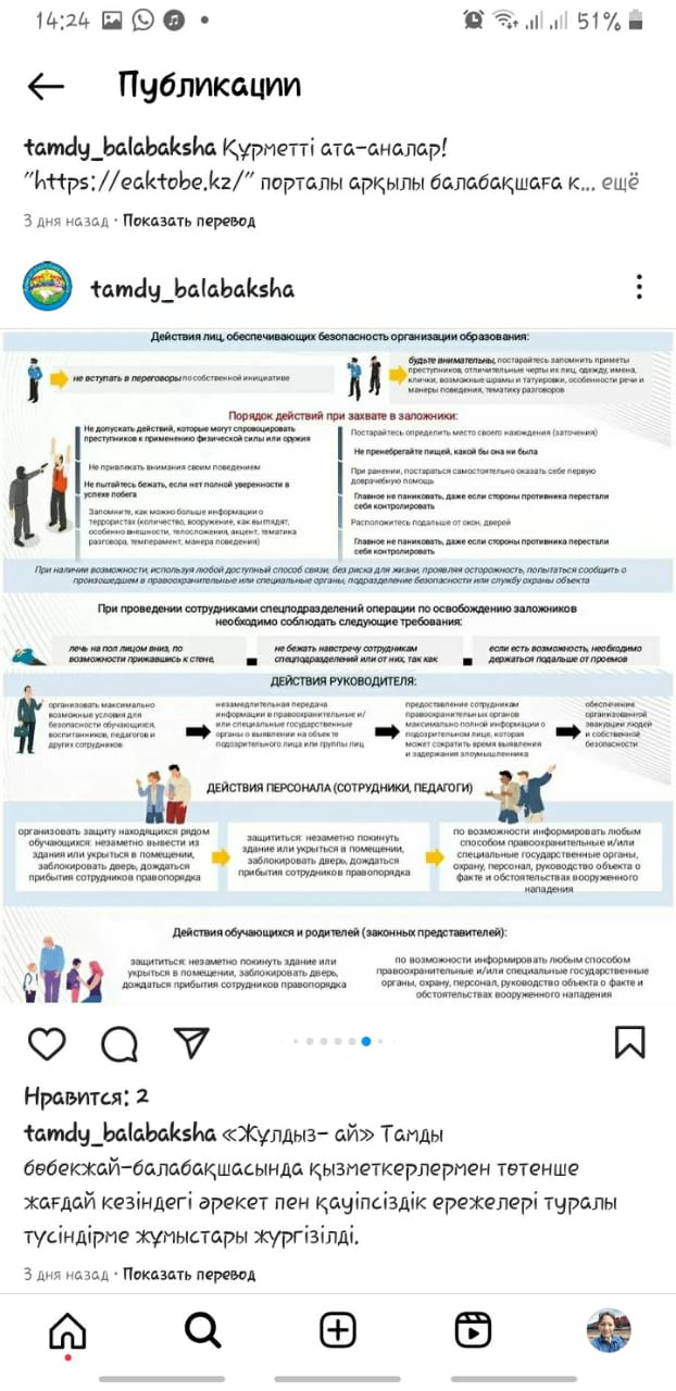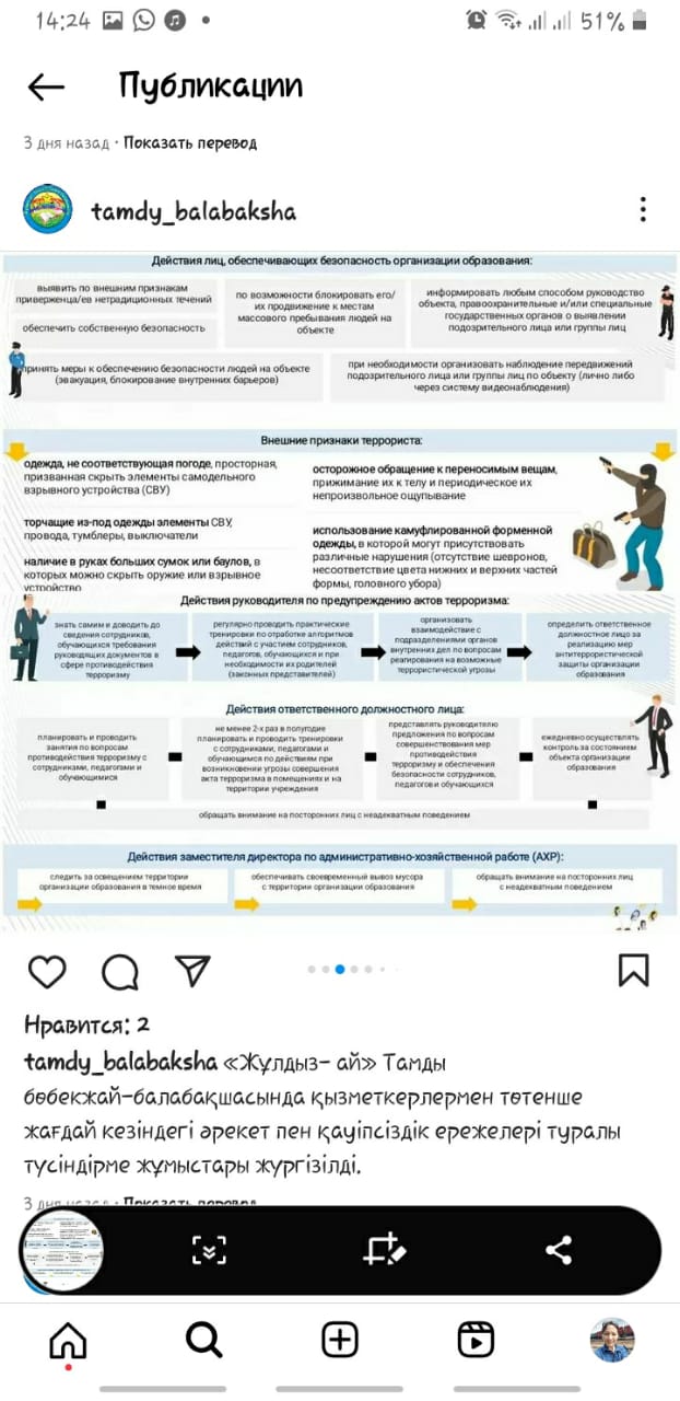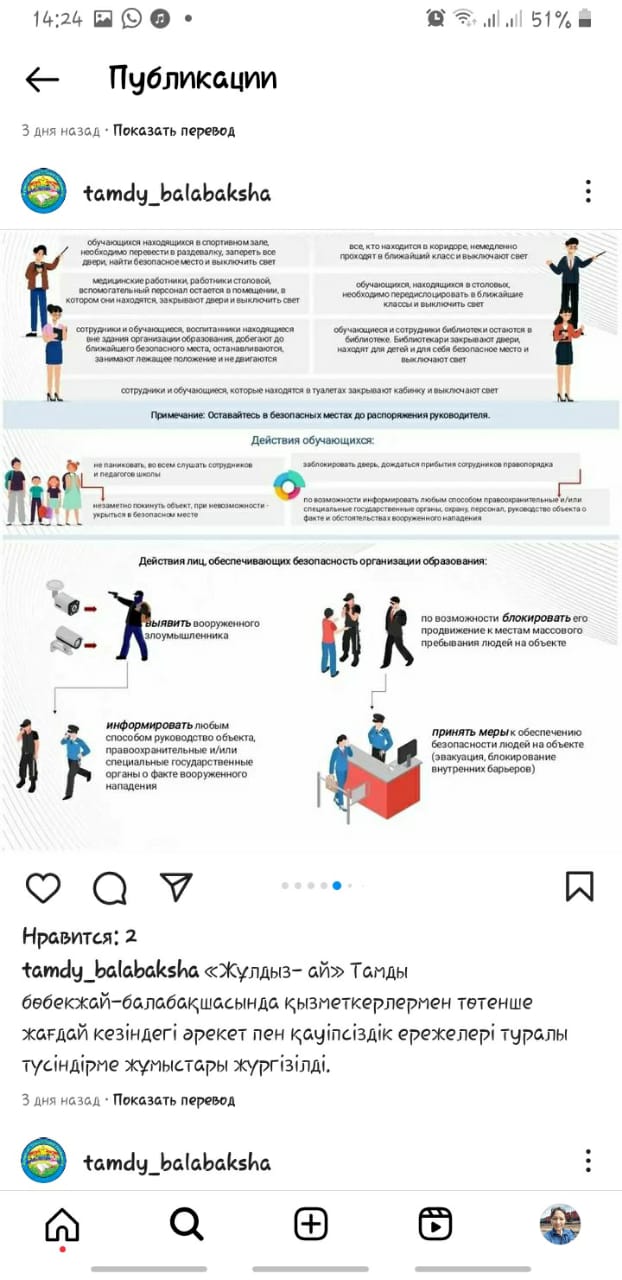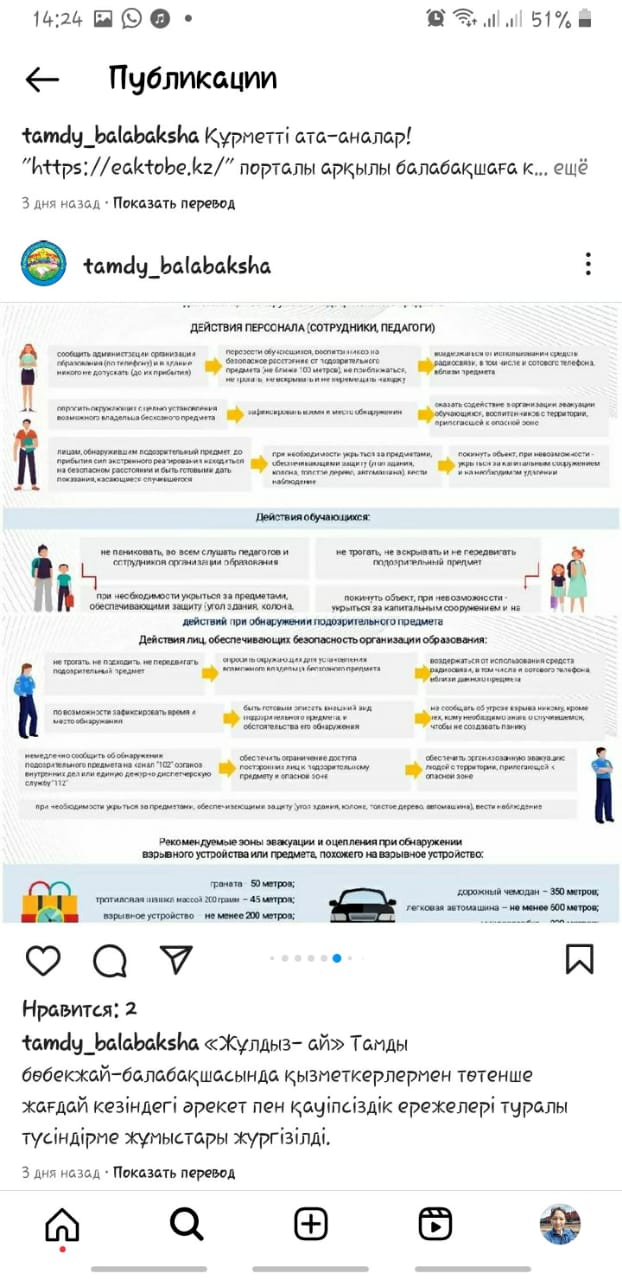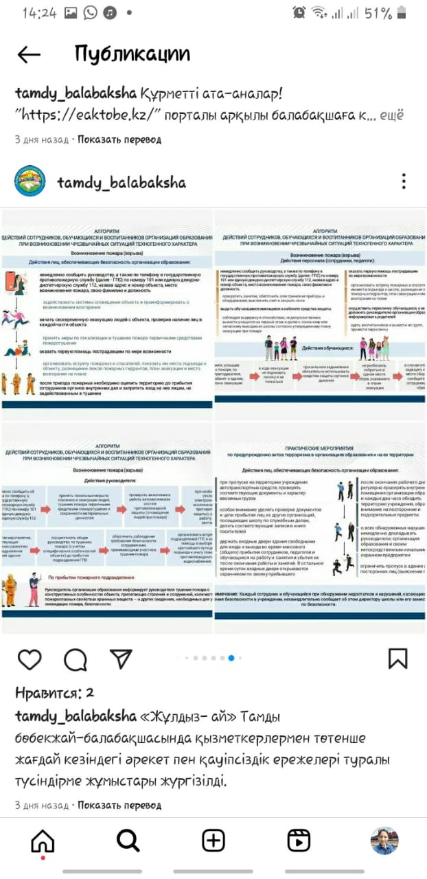 20.05.2023 жыл. «Жұлдыз-ай» Тамды бөбекжай- балабақшасында төтенше жағдай кезіндегі әрекет пен қауіпсіздік ережелері туралы түсіндірме жұмыстары жүргізілді.