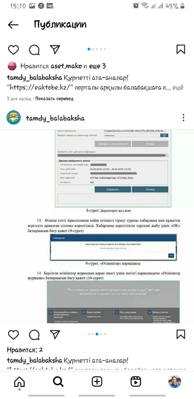 20.05.2023 жыл. Құрметті ата- аналар! «https://eaktobe.kz/» порталы арқылы балабақшаға кезекке қою, жолдама алу сияқты қызметтерді ала аласыздар. Көрсетілген әдістемелік нұсқаулықтарды қолдану арқылы сіздер үйде отырып- ақ баланы балабақшаға кезекке қоя аласыздар.