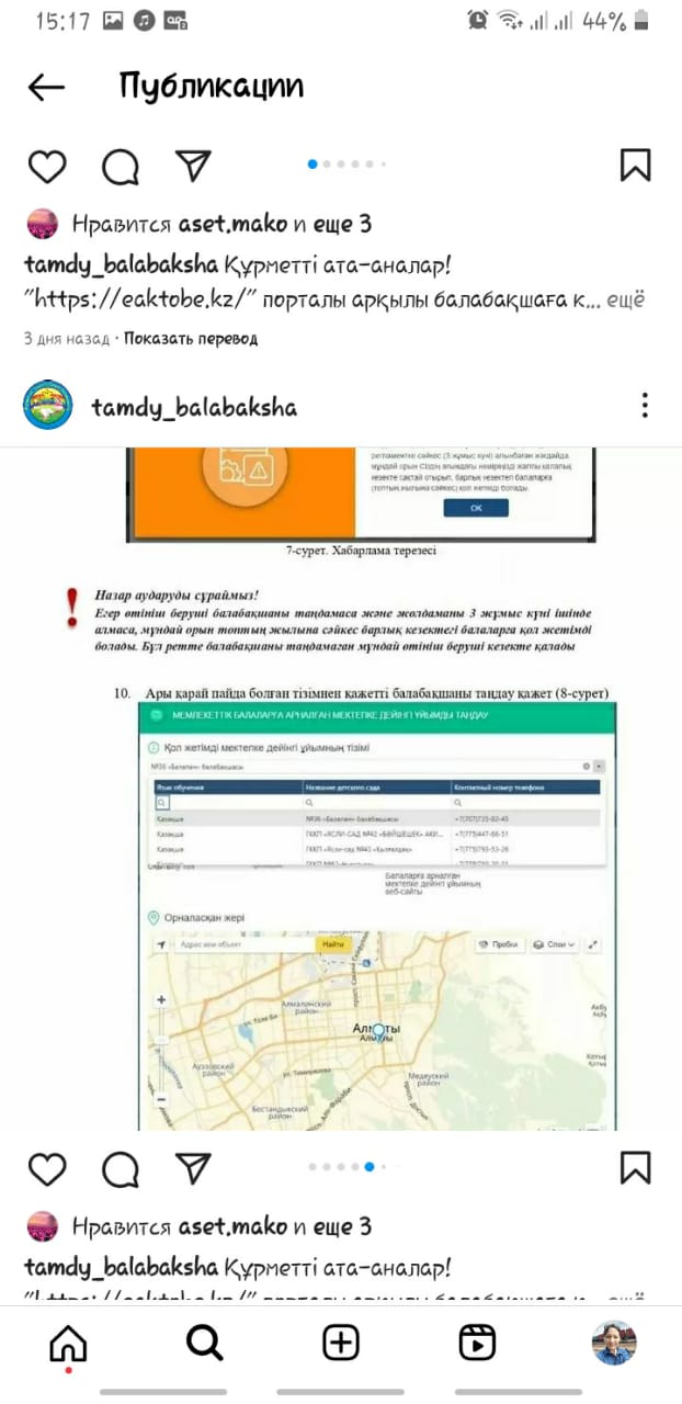 20.05.2023 жыл. Құрметті ата- аналар! «https://eaktobe.kz/» порталы арқылы балабақшаға кезекке қою, жолдама алу сияқты қызметтерді ала аласыздар. Көрсетілген әдістемелік нұсқаулықтарды қолдану арқылы сіздер үйде отырып- ақ баланы балабақшаға кезекке қоя аласыздар.